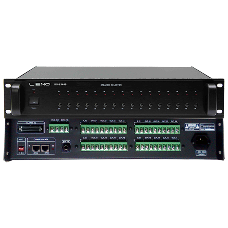 - ★ 4路输入16路输出;最多接入4台功放,可手动控制每个分区的开关或全开、全关
