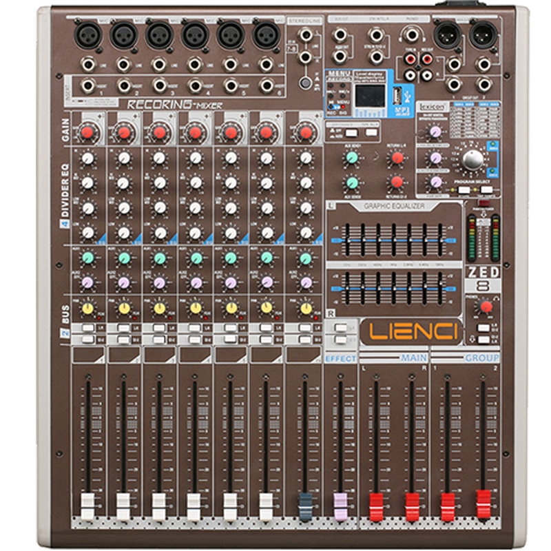 ●6路线路出入+1组立体声出入,内置32咱可分段调节(带记忆)莱斯康效果器。